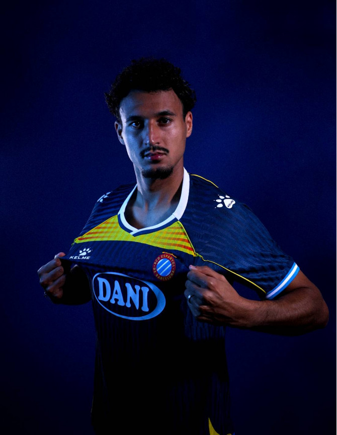 Completa la seva indumentària amb el pantaló de joc oficial de la tercera equipació del RCD Espanyol 2025/26, en un elegant i vibrant blau marí.