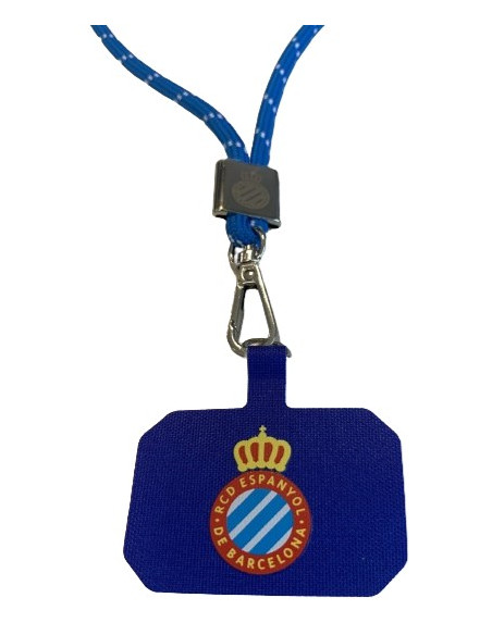 Pilota gran de color blanc amb una franja blava, amb l’escut oficial del RCD Espanyol i el logo de Periquito.