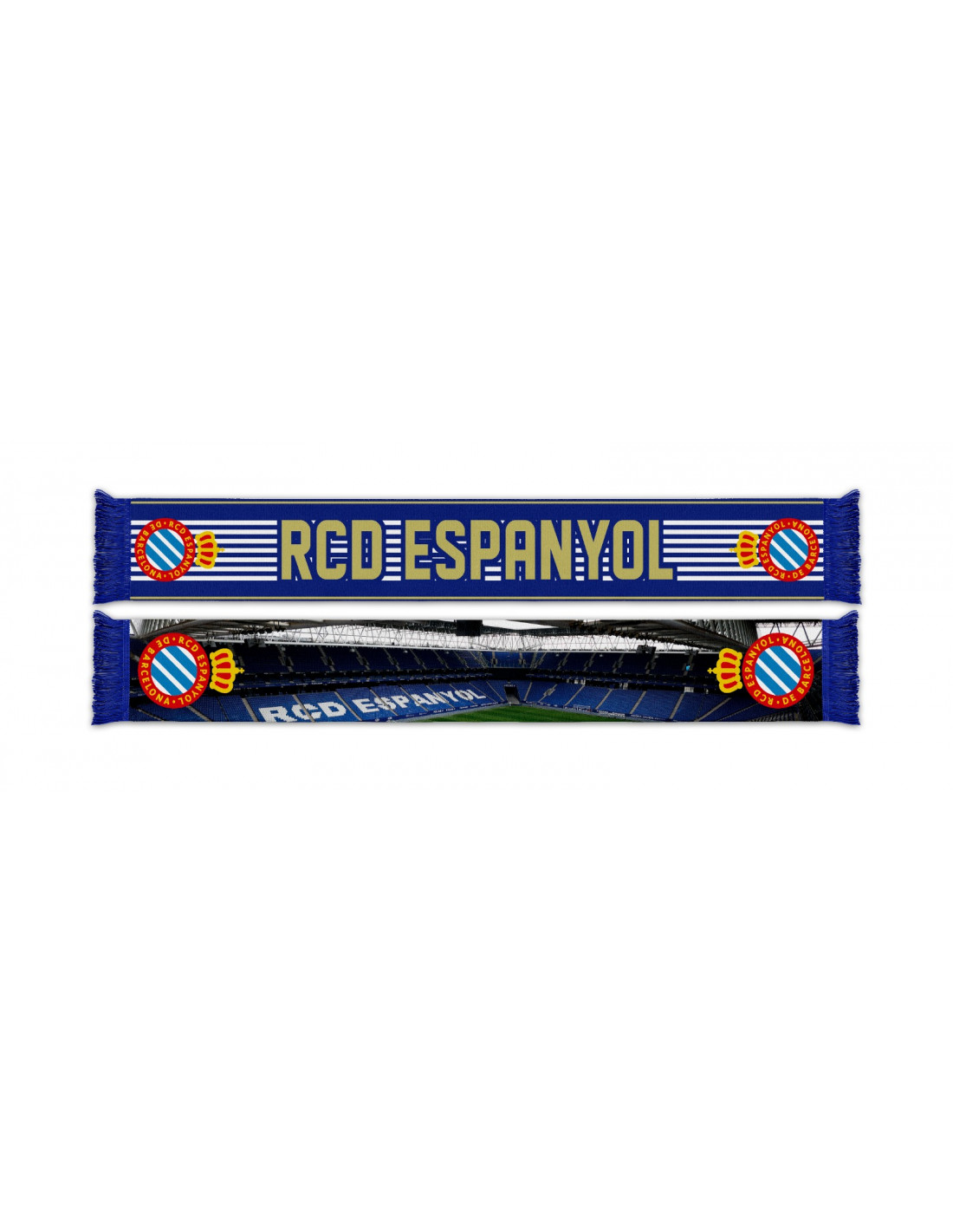 Bufanda oficial del RCD Espanyol amb disseny sublimat que reflecteix els colors i detalls de l’estadi. Ideal per mostrar la teva passió per l’equip durant els partits.
