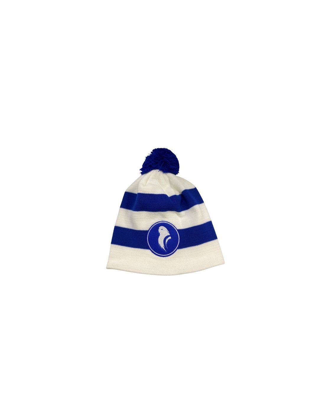Gorro de llana RCDE en color royal amb escut brodat al davant i ratlles blaves i blanques als costats.
