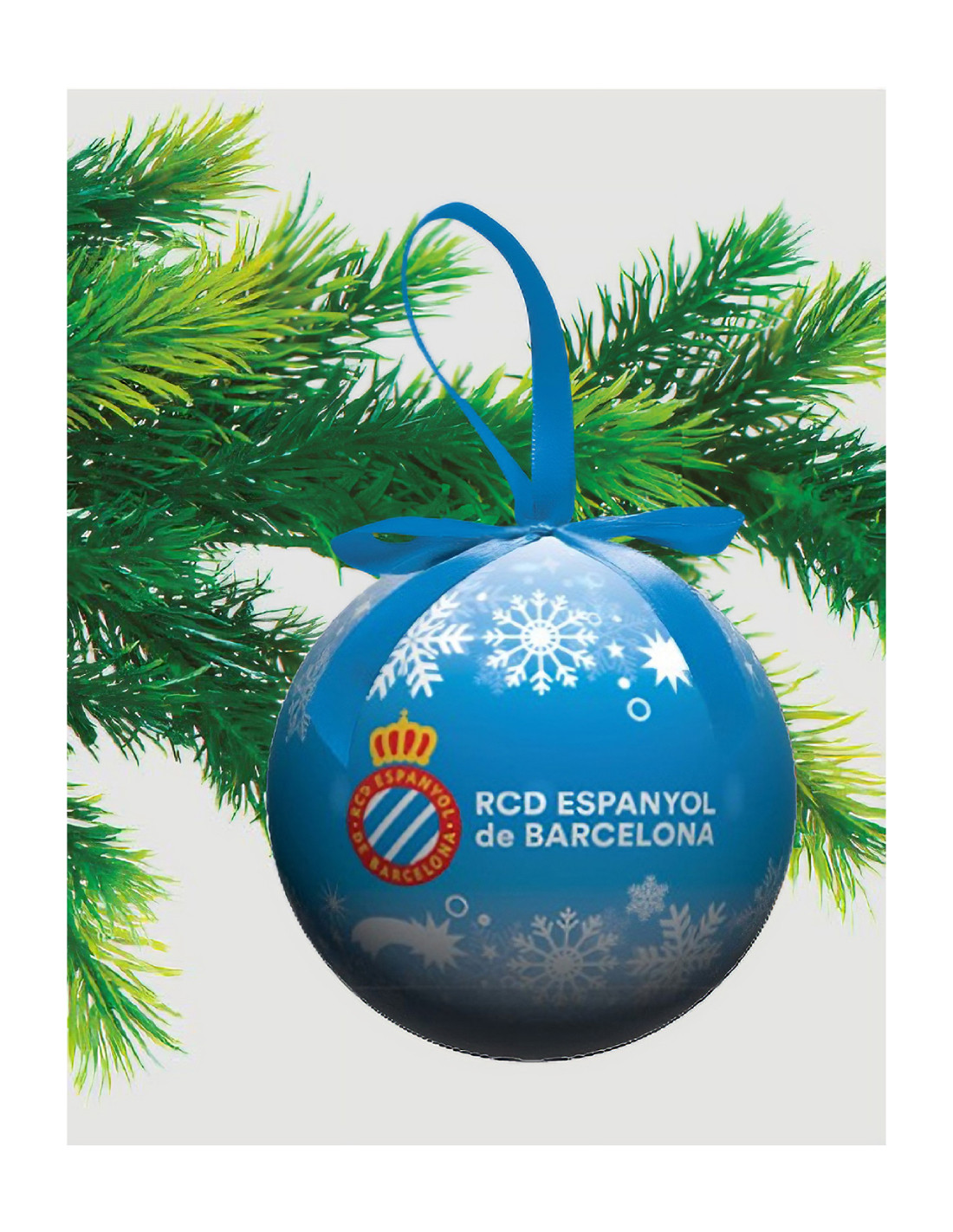 Decora el teu Nadal amb la Bola Blau del RCD Espanyol de Barcelona, plena de brillantor, màgia festiva i orgull blanc-i-blau.