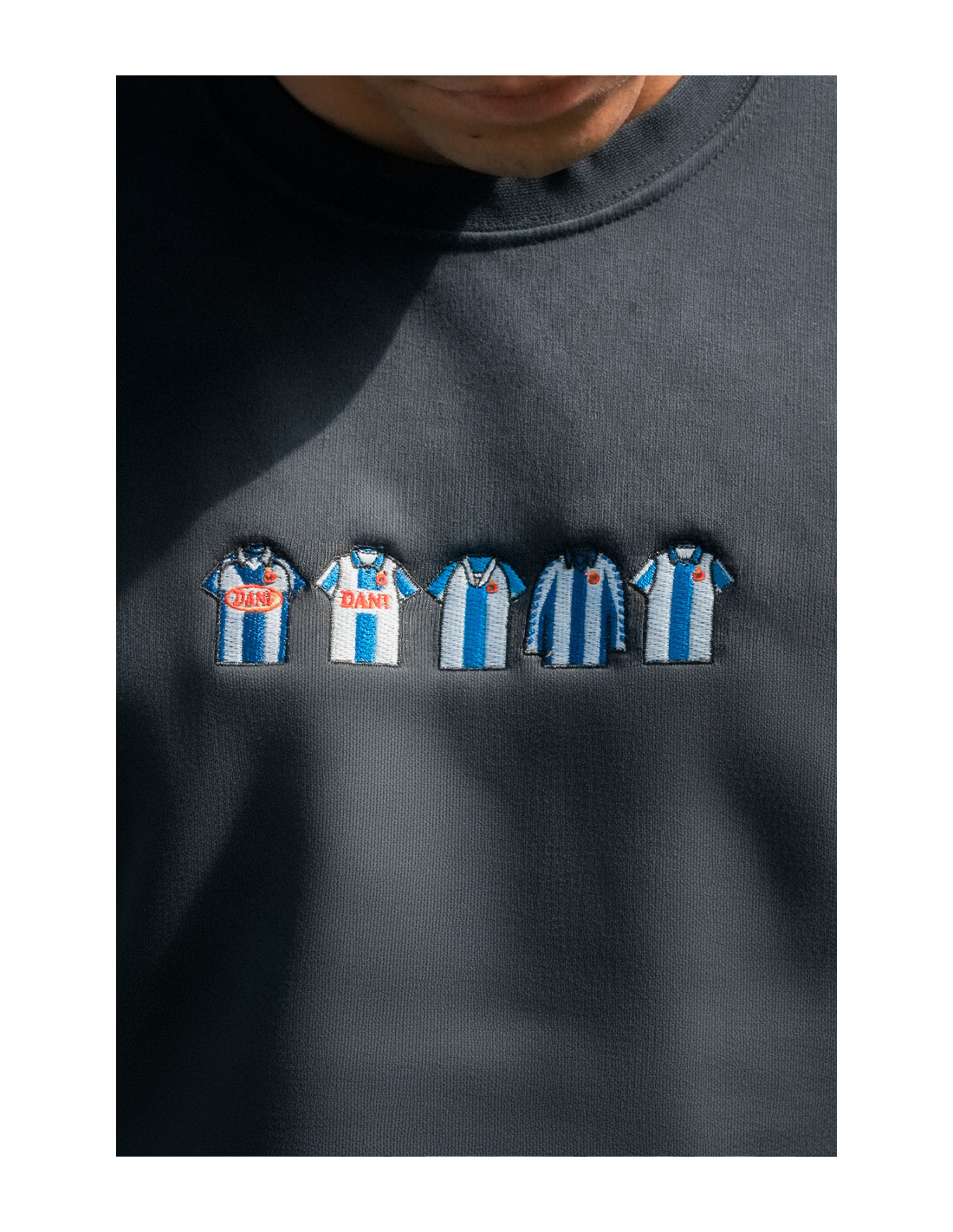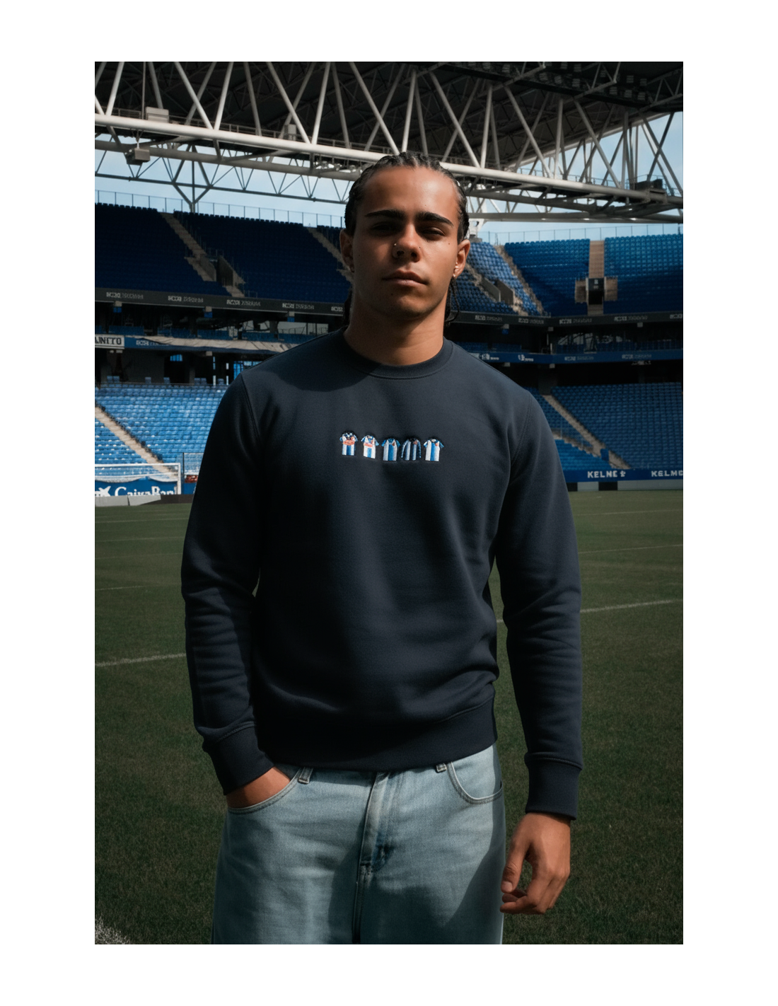 Si us agraden les camis retro i els brodats, aquesta és la vostra dessuadora. Una selecció de les samarretes més icòniques del RCD Espanyol en una sola peça. Brodades a tot detall.