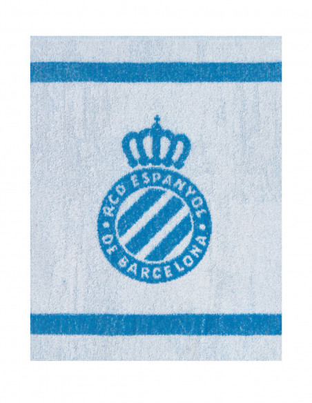 Drap de cuina del RCD Espanyol, de color blanc amb l’escut en blau. Pràctic i amb estil, ideal per als aficionats blanc-i-blaus.