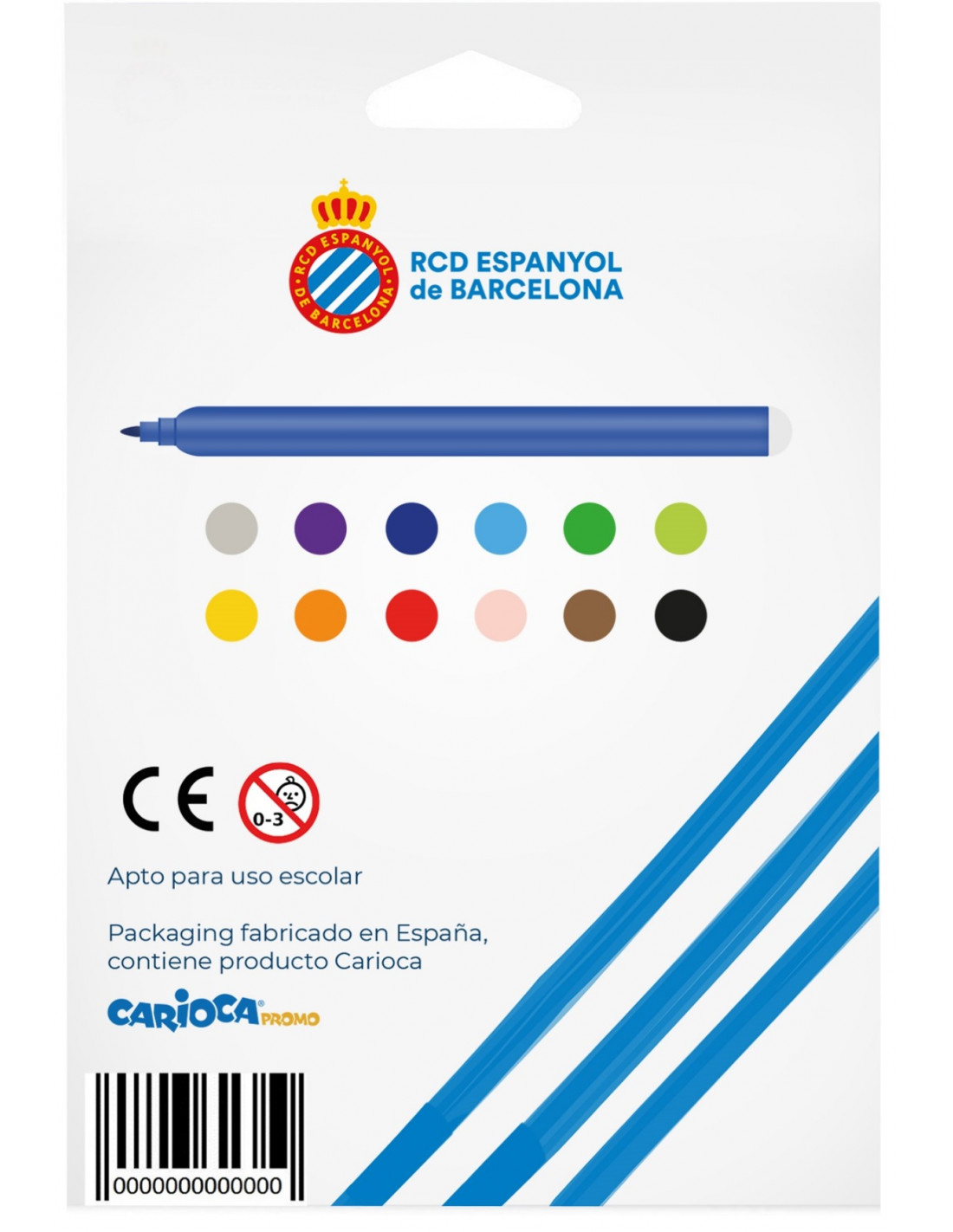 Dóna llibertat a la teva creativitat amb la nostra caixa de 12 retoladors de colors del RCD Espanyol de Barcelona.