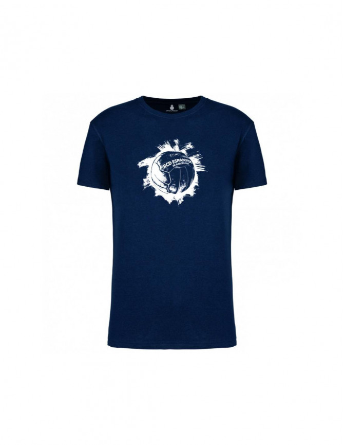 El seu disseny destaca per un impactant gràfic central en blanc amb una pilota vintage, acompanyat del nom del RCD Espanyol de Barcelona, sobre una base blau navy que transmet força i elegància.