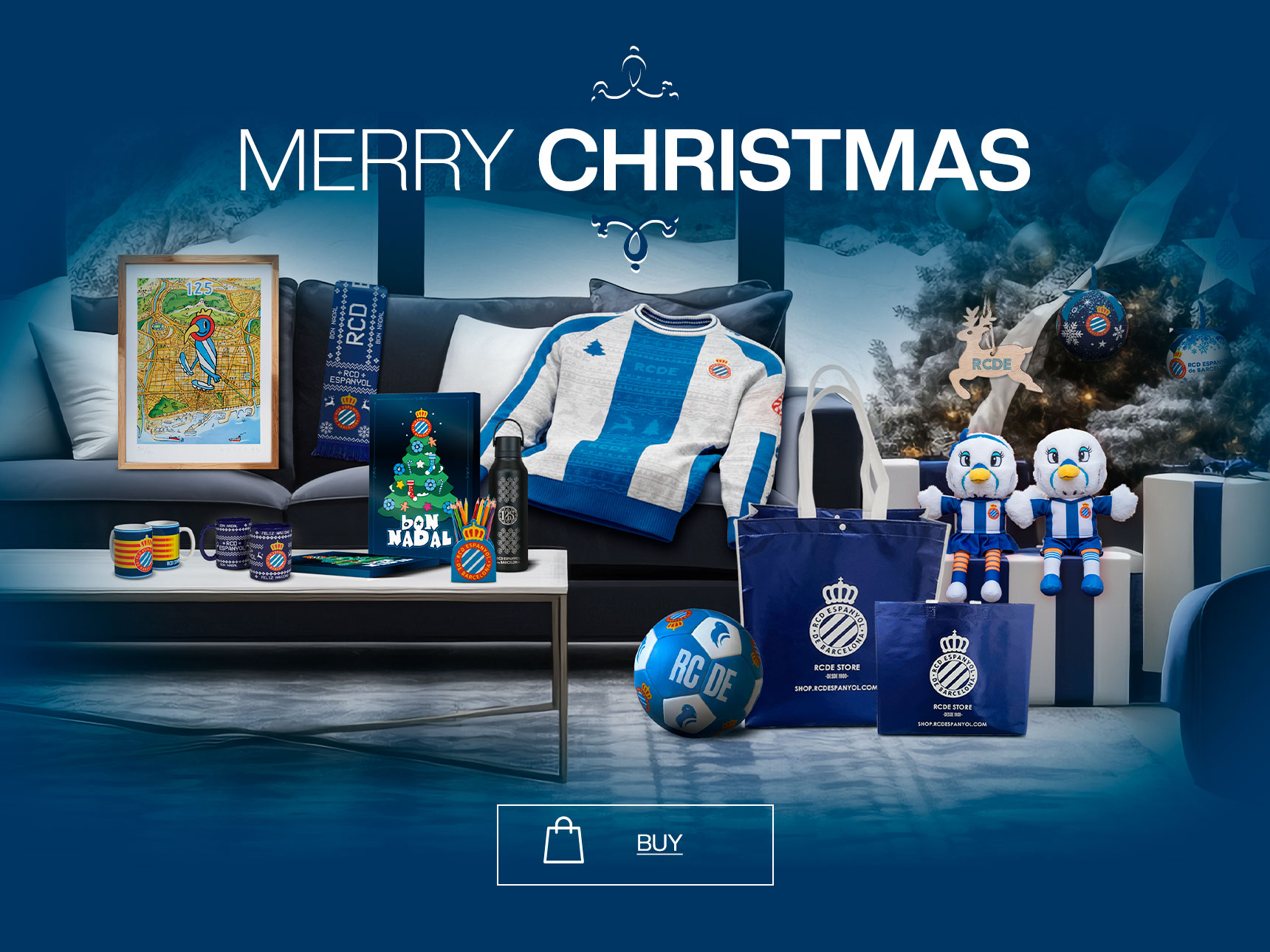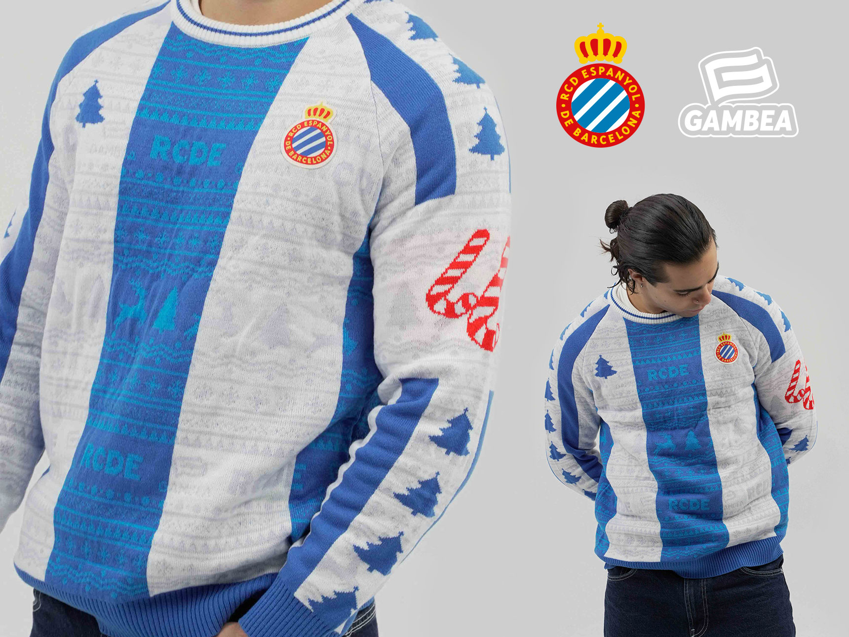 Celebrate Christmas in blue-and-white style with the RCD Espanyol Christmas Jersey for the 25/26 season, in collaboration with GAMBEA.