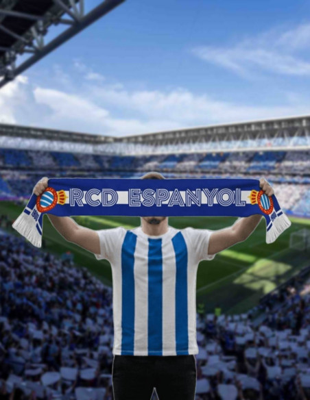 Official RCD Espanyol scarf that combines tradition and modern style.