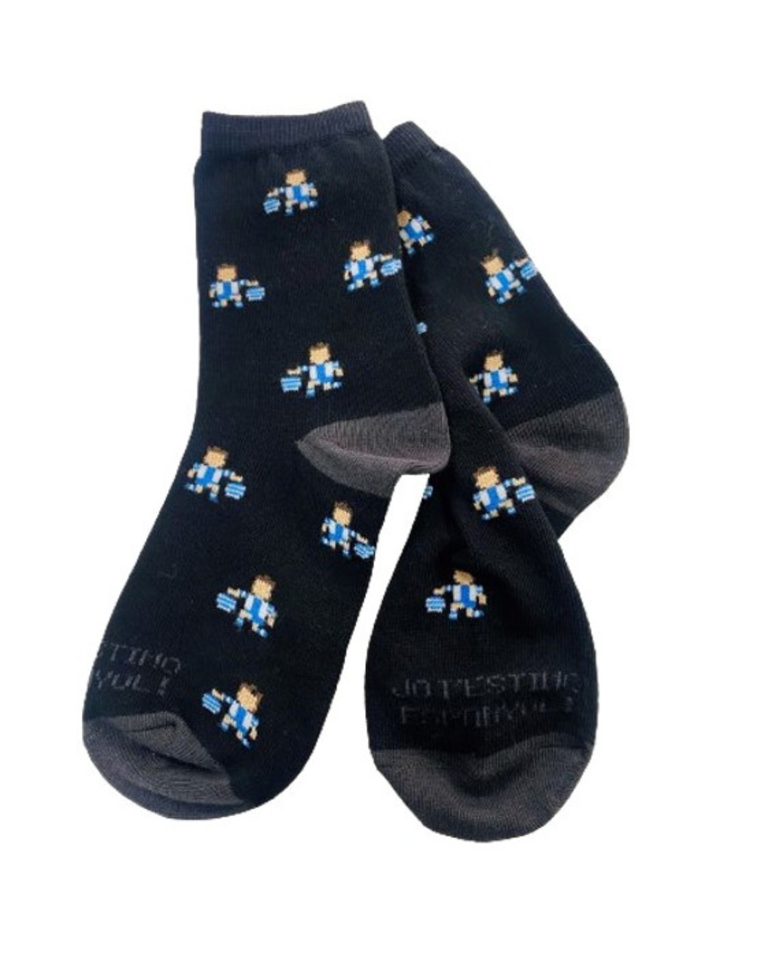 These exclusive pixel edition socks in blue and navy are the perfect accessory for any stylish Perico.