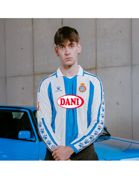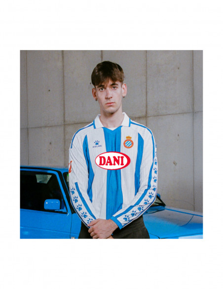 The long-sleeve version adds a distinctive, classic touch — perfect for fans who prefer a timeless style or for those cooler match days. Featuring the signature Kelme claw on the cuffed sleeves, a polo-style collar, and the classic central blue-and-white stripe, it embodies the essence of RCD Espanyol.