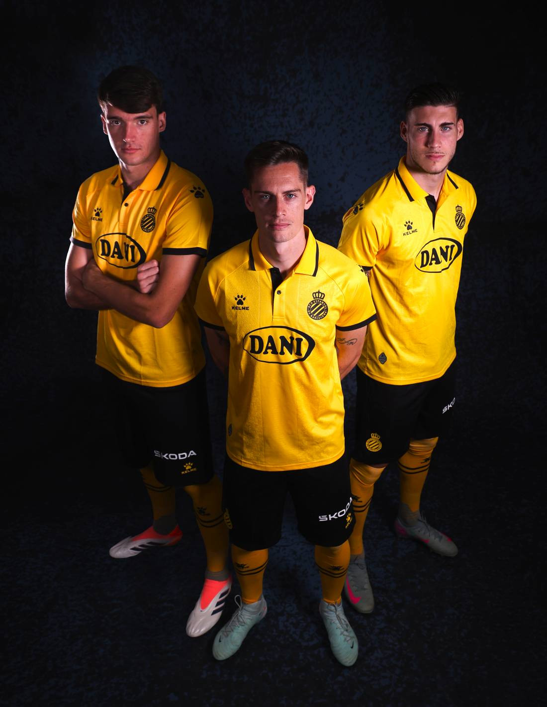 Los primeros colores del Espanyol fueron el amarillo y negro. Según el testimonio del propio Ángel Rodríguez, "uno de nuestros afiliados era fabricante de tejidos y para confeccionar los equipos nos regalaba unas piezas de color amarillo". El diario La Veu de Catalunya, en su edición del día 26 de noviembre de 1900, ahondó un poco más sobre el atuendo "canario": "lluía son uniforme groch y negre, completat per una boyna". La primera foto conocida del Club se produce a finales de año, frente a una incipiente Sagrada Familia.