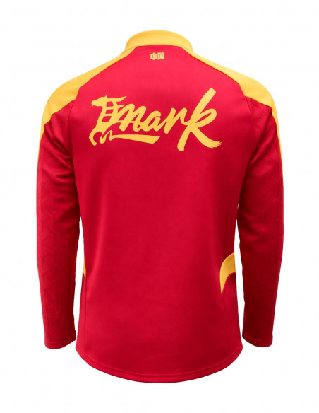 Esta sudadera de entrenamiento exclusiva, diseñada junto a Kelme, presenta el rojo como color predominante con detalles en dorado tradicionales del Año Nuevo Chino, colores que simbolizan la suerte y el éxito.