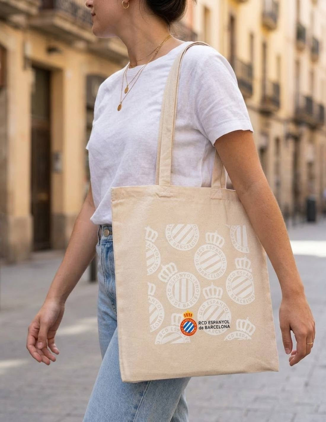 Esta tote bag en tono beige combina la elegancia de lo clásico con el orgullo de nuestro club.