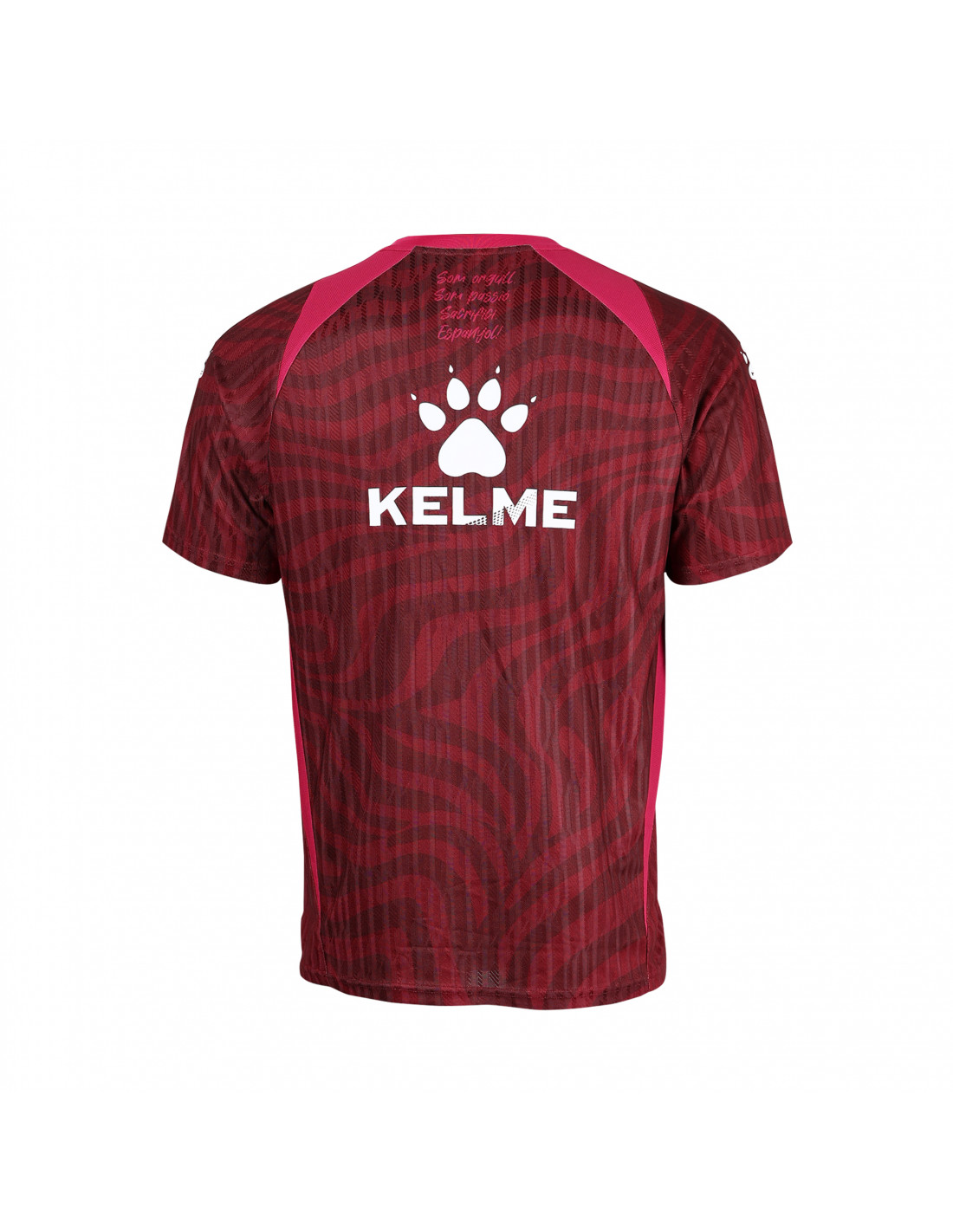 Camiseta de entrenamiento color bourdeos presenta detalles fucsias en laterales y costuras aportando un toque vibrante y moderno al diseño, incorporando la novedad de poder lucir nuestro escudo con acabado gloss.