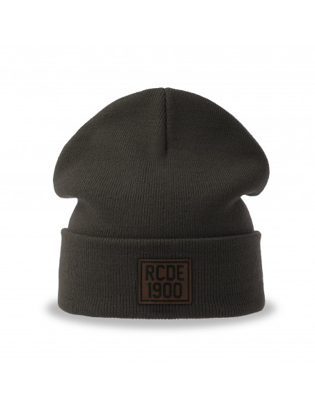 Gorro de lana RCDE en color kaki con parche frontal “RCDE 1900”.