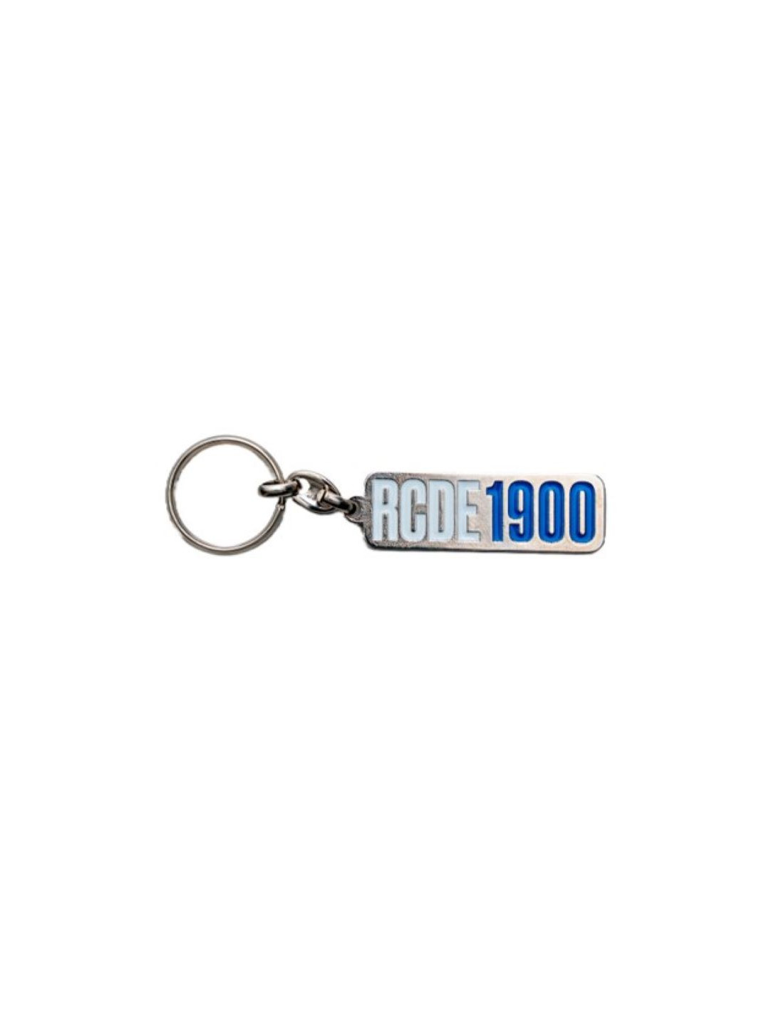El Llavero 1900 Blanc i Blau del RCD Espanyol de Barcelona es un accesorio plateado que destaca por sus detalles blancos en las letras RCDE y en azul en el 1900.