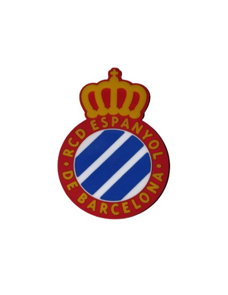 El Imán Escudo de Goma del RCD Espanyol es un accesorio resistente y colorido que reproduce fielmente el escudo del club, ideal para mostrar tu pasión blanquiazul en cualquier superficie metálica.