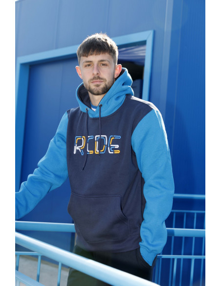 Confeccionada en suave algodón, esta sudadera en tono azul navy ofrece un ajuste cómodo y un estilo moderno. El protagonista del diseño es el bordado frontal RCDE con un trazo tubular multicolor que...