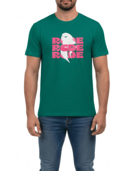 Su llamativo diseño gráfico combina el emblema del perico en blanco con la repetición del "RCDE" en rosa fucsia, todo sobre un fondo verde intenso que no pasa desapercibido.