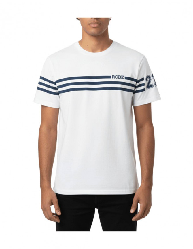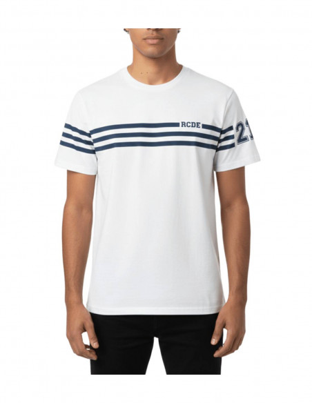 Su blanco profundo se combina con tres líneas azules horizontales que recorren el pecho, donde destaca el distintivo "RCDE". En la manga, el número 21 bordado añade un toque de carácter y orgullo, convirtiéndola en una pieza única para los verdaderos seguidores.