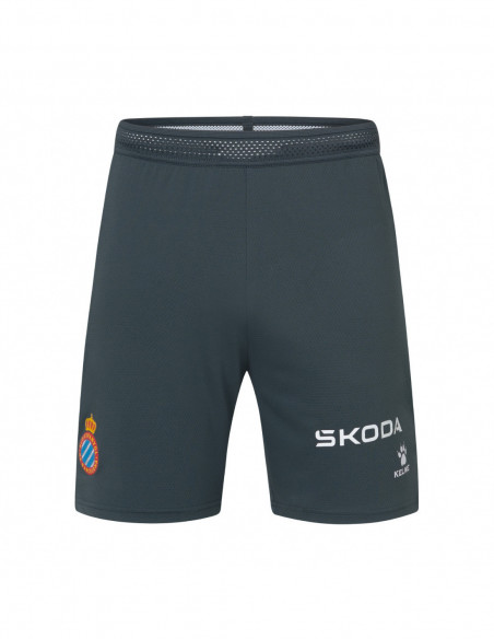 Completa tu Tercera Equipación de nuestro RCD Espanyol con los pantalones cortos Temp 24/25 en color gris.