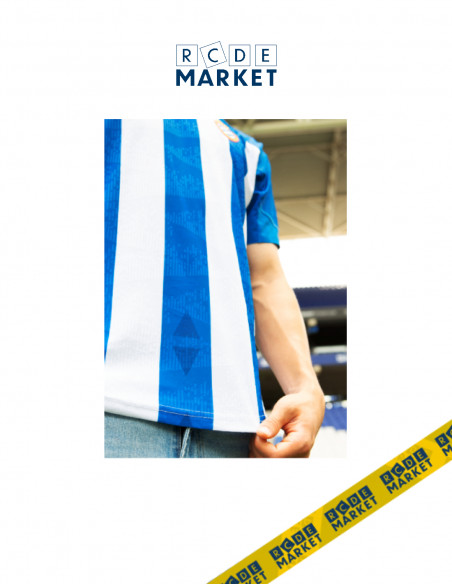 Además, esta temporada, coincidiendo con el decimoquinto aniversario de nuestro estadio, y en homenaje a esta efeméride, se ha añadido un detalle especial: dibujos triangulares en la parte inferior de la camiseta que evocan la estructura arquitectónica del estadio blanquiazul. Este toque no sólo enriquece el diseño sino que también conecta la indumentaria con la historia reciente del club y del actual feudo blanquiazul.