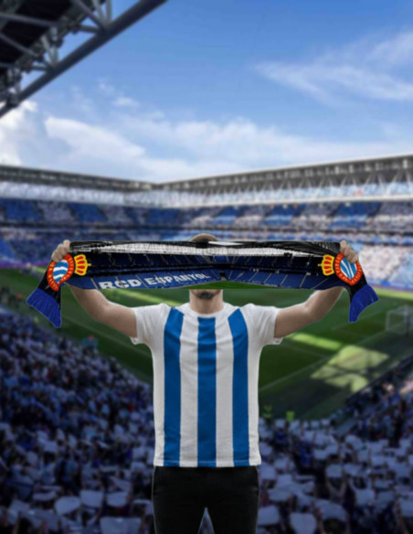 La chaqueta de chándal prepartido del RCD Espanyol de Barcelona en azul navy es la prenda que acompaña a nuestros jugadores en los momentos previos al salto al terreno de juego.