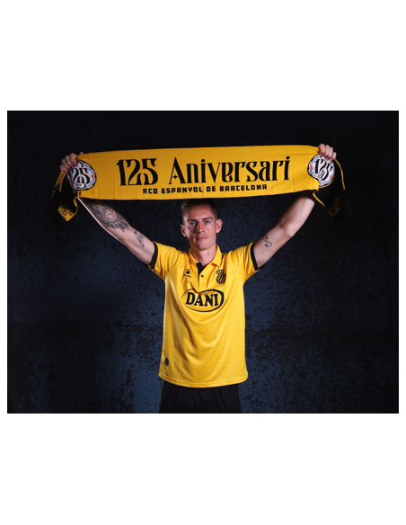 用这条象征激情和自豪的纪念围巾庆祝西班牙人竞技队成立 125 周年。这款围巾采用独特的设计,将周年徽标、历史日期 “1900 - 2025 ”和俱乐部徽章结合在一起,是您每场比赛的完美配饰,展现您对蓝白军团的忠诚。